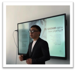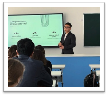 Кәсіби бағдар беру жұмысы аясында мектебімізге өзіміздің мектеп түлектері — Қайдар Нұрислам Абайұлы және Султанова Индира Ринатовна қонаққа келді. Қазіргі таңда олар Еуразия ұлттық университетінде «Сәулет» және «Журналистика» мамандықтары бойынша білім алуда. Кездесу барысында қонақтар университетке түсу және оқу барысындағы жеке тәжірибелерімен бөлісіп, таңдаған мамандықтарының ерекшеліктері туралы айтып берді, сондай-ақ оқушылардың сұрақтарына жауап берді. Сонымен қатар, олар талапкерлерге жоғары оқу орындарына сәтті түсуге көмектесетін шығармашылық емтихандарға дайындық бойынша өздері әзірлеген курсты ұсынды.